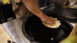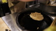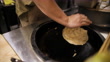 The chef beats the flaky scallion pancake