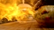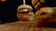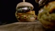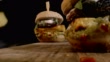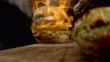 Flames over Veggie Burger with Grilled Cheese, Mushroom, Guacamole and Arugula in Slow Motion
