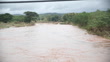Flash flood with muddy water carrying bamboo sticks downstream, the power of extreme weather, natural disaster impact, and environmental destruction in rural regions - 4K stock video