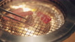 Flipping the premium meat on a barbecue fire grill at restaurant. - 4K stock video