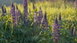 Flowers blowing in the wind at sunset, view over rolling hills - 4K stock video