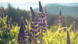 Flowers blowing in the wind at sunset, view over rolling hills - 4K stock video
