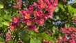 Flowers on a Red Horse-chestnut tree (Aesculus x carnea) during the Spring season in Markham, Ontario, Canada. The tree is a artificial hybrid between A. pavia (red buckeye) and A. hippocastanum (horse-chestnut). Its origin uncertain, probably appearing in Germany before 1820. It is a popular tree in large gardens and parks. The flowers of the Red Horse Chestnut (pink or red depending on cultivar) are the main attraction of this medium sized tree. After the flowers bloom, they are followed by the seed pods. (Footage by 51³Ô¹ÏÍø Touch Imaging/NurPhoto via Getty Images)