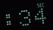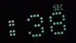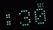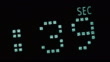 Fluorescent display countdown self-destruction timer in green and red color over black background.