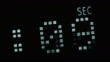 Fluorescent display countdown self-destruction timer in green and red color over black background.