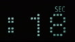 Fluorescent display countdown self-destruction timer in green and red color over black background.