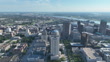 a drone shot fly above downtown area of St. Louis city, Missouri