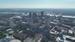 a drone shot fly around downtown area of St. Louis city, Missouri