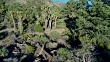 The Joshua tree (Yucca brevifola) is a large, flowering plant that is confined almost entirely to the Mojave Desert in the southwestern United States. These large specimens in the northeastern San Bernardino Mountains of southern California are nearly as large and robust as any that have been identified, at about 15 m (49 feet). They are growing amongst scattered single-leaf pinyon pine (Pinus monophylla) and sagebrush (Artemisia sp.).