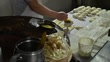 Footage of local chef while making naan bread in kitchen. Naan is a soft, pillowy flatbread traditionally baked in a tandoor. - 4K stock video