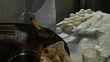 Footage of local chef while making naan bread in kitchen. Naan is a soft, pillowy flatbread traditionally baked in a tandoor. - 4K stock video