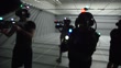 Footage of the Mindtrek VR gaming as a group plays in their facility in Woburn, MA on July 20, 2017. Shots: CU of six screens depicting gamers playing wider shots of same subject shot of interior of gaming arena as gamers walk around with VR equipment on more generic footage of gamers walking around holding guns CU of feet walking around more generic gaming footage shot of VR guns sitting in a row on the ground