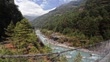 Footage while walking on Suspension Bridge for crossing the Dhudh Kosi river in Sagamartha national park in Nepal. - 4K stock video
