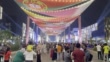 DOHA, QATAR - NOVEMBER 19: Football fans gather under a lighted banner at the Lusail Boulevard fan area ahead of the FIFA World Cup Qatar 2022 at on November 19, 2022 in Doha, Qatar. (Footage by Clive Brunskill/Getty Images)