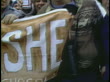 1983 CU PAN Football fans of Herschel Walker of USFL team New Jersey Generals holding banner during game / USA - stock video