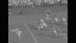 Title: "Football - Michigan State Wins 21st in a row!" superimposed over marching band forming "P" on football field at Ross-Ade Stadium / VS college football game between the Purdue Boilermakers and the Michigan State Spartans, with the game in play watched by a crowd of thousands; touchdowns, passing, fumble, somersault tackle; players include Donald McAuliffe, William Wells, Dale Samuels, Paul Dekker, Thomas Yewcic, Bernard Flowers