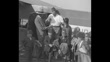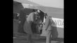 CU Ford Trimotor airplane taxis to a stop / MS very tall man exits the plane to join a man in a Shriner's fez and another man with a monkey on a leash / tall man assists adult little people wearing fezzes off the plane, a heavy man jokes that there may be midgets under a seat in the plane / One of the little women, tugging on the tall man's coat, SOT says, "Hey, is it cold up there?" SOT man replies, "If you want to know how cold it is, just come up here and I'll give you a free trial," as he leans to lift them up / Note: exact year not known; documentation incomplete