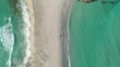 Aerial drone footage of Playa de Ses Illetes with its secluded beaches and turquoise ocean in the mediterranean sea of Formentera, Spain. This beautiful and protected sea is now a UNESCO World Heritage site due to its rich biodiversity.