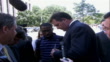 EXT DAY MS Former Major League Baseball (MLB) player, Roger Clemens and his attorney Rusty Hardin are followed by the press as they walk from the courthouse after the judge declared the perjury trial a mistrial. Roger Clemens stops to sign an autograph. Roger Clemens is a former Major League Baseball (MLB) pitcher who is notable for winning seven Cy Young Awards and getting more than 4,000 strikeouts in his career. He was then alleged by the Mitchell Report to have used steroids in his career.