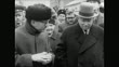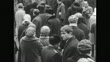 Former Soviet Premier Nikita Khrushchev walking on the streets of Moscow surrounded by a huge crowd of onlookers and press / Khrushchev nods and greets many of the crowd as he walks / goes inside to vote in general election.