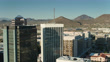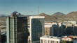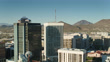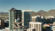 Forward push over towers in downtown Tucson revealing Sentinel Peak Park.