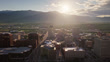 Forwards Drone Flight Over Downtown Colorado Springs Towards Sun Setting Behind Pikes Peak - 1 of 2 - 4K stock video