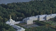 A fountain sprays in the courtyard of the Catherine Palace in St. Petersburg.