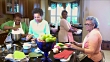 A group of four African American women in their 50s and 60s in the kitchen cooking together. The ones standing are working together to bake a sweet potato pie, a common dish in the Southern states of USA.