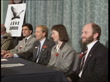 Project Juno: Four candidates remain:; ENGLAND: London: Savoy Hotel:INTFour prospective cosmonauts on platform; Lieutenant Commander Gordan Brooks, Helen Sharman, Clive Smith, Major Timothy RiceEXTFour cosmonauts pose for media, holding UK/Soviet flags.Helen Sharman intvw SOF- About her preparations for flight and change of lifestyle.
