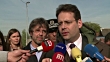 France's Interior and Housing Ministers Matthias Fekl and Emmanuelle Cosse visit the Grande Synthe migrant camp after a fire gutted the camp following a brawl involving hundreds of Afghans and Kurds (Footage by AFPTV via Getty Images)
