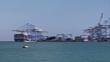 Free port cranes on the horizon busy at work