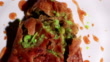 Crispy fresh deep fried samosa table top view spinning isolated on white background.