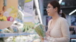 Fresh vegetables are good, nutritious food at supermarket and checking her shopping list - 4K stock video