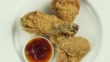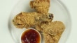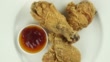 Fried chicken. unhealthy eating. chicken drumstick and wing. Top view, rotating loop shot 4k resolution.
