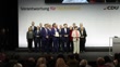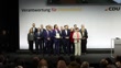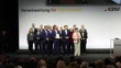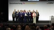 BERLIN, GERMANY - MAY 5: Friedrich Merz (C), leader of the Christian Democratic Union (CDU), Markus Soeder (C,L), leader of the CDU'S Bavarian sister party, the Christian Social Union (CSU), Lars Klingbeil (C,R) and Saskia Esken (R), co-leaders of the German Social Democrats (SPD), stand on stage with members of the new federal coalition government after the three parties signed the coalition contract between the parties on May 5, 2025 in Berlin, Germany. The coalition contract, which the three parties have negotiated over the past weeks, sets the police framework for the next federal coalition government. The new government is scheduled to be sworn in during a special session of the Bundestag on May 6. (Footage by Christian Ender/Getty Images)
