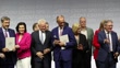 BERLIN, GERMANY - MAY 5: Friedrich Merz (C), leader of the Christian Democratic Union (CDU), and Markus Soeder (L), leader of the CDU'S Bavarian sister party, the Christian Social Union (CSU), stand on stage with members of the new federal coalition government after the CDU, CSU and the German Social Democrats (SPD) signed the coalition contract between the parties on May 5, 2025 in Berlin, Germany. The coalition contract, which the three parties have negotiated over the past weeks, sets the police framework for the next federal coalition government. The new government is scheduled to be sworn in during a special session of the Bundestag tomorrow. (Footage by Christian Ender/Getty Images)