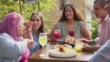 Friends drinking and eating at restaurant - 4K stock video