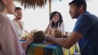 Friends talking in restaurant on the beach - 4K stock video