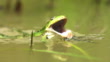 SLOMO Frog (Rana) attacks damselfly (Calopteryx) in marsh, Germany ( NBRD358N - ABGA427R )