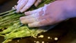 Frying Pajeon(Korean scallion pancake) / South Korea - 4K stock video