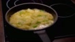 Frying pan with oil frying potatoes to make an omelette in a domestic kitchen - 4K stock video