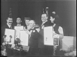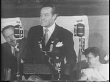 A full banquet hall/ Fellow actors, among them Vera Vague, hold plaques / Bob Hope speaks on the privilege of making soldiers laugh / clip also includes Donald M Nelson, Graham Patterson, Jerry Colonna, Tony Romano, and Frances Langford.