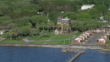 Aerial view of historic Fulton Mansion covered with trees in Rockport, Texas, United States of America