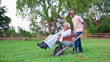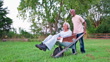 Fun loving senior black couple playing in the backyard pushing each other in the wheel barrow - 4K stock video