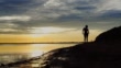 Funny Girl silhouette Exercise outdoor on the edge of the cliff at sunset - HD stock video