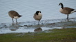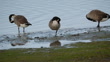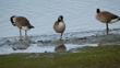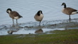 Gaggle of Canada Geese grooming on lake shore in the Pea island National Wildlife Refuge on the Outer Banks of North Carolina, slow motion.