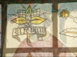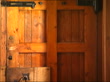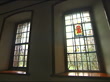 Galleries and museums: William Morris house bought by National Trust; INT Windows, with stained glass panels featuring angel, birds, flowers Corridor and oak panelled doorStained glass window panels showing Morris motto 'Si Je Puis' ('If I am able')Detail of painting Hallway with settle and details of painting on settle (taken from Aurthurian legend, featuring Morris and friends)