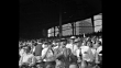 Game 1 1954 World Series between New York Giants and Cleveland Indians at the Polo Grounds / WS Cleveland pitcher Bob Lemon / CU Giants' Don Mueller / CU men in stands / Mueller's play involves Indians' Bobby Avila and Giants' Whitey Lockman and Al Dark / Giants' Hank Thompson at bat / top of the eighth inning Giants change pitchers from Sal Maglie to Don Liddle / CU Indians' Vic Wertz at bat / WS Cleveland dugout / Wertz hits and Giants' Willie Mays makes famous catch at the wall / fans on their feet cheering / bottom of the tenth inning Mays at bat, walks / Thompson at bat and Mays steals second in between pitches / crowd stands