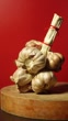 A bundle of garlics on wooden board with rust colored background. Garlic and red onions (purple or bluehi onions), often associated with good fortune, health, and protection against evil spirits, are not only believed to ward off negativity and bring positive energy into homes during the New Year, but they also serve as staples in Vietnamese cuisine prepared for Tết, commonly featured in traditional dishes like stews, Chả Giò spring rolls, and various types of meat, all of which may be flavored with garlic and red onions.