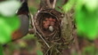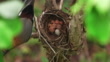 Garrulus glandarius (Eurasian jay) taking over nest of Turdus hortulorum (Grey-backed thrush) / Yanggu-gun, Gangwon-do, South Korea - 4K stock video